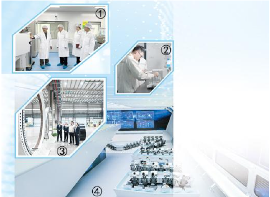 图①:在合源生物科技(天津)有限公司实验室,技术人员(左一)向北京银行天津分行工作人员详细讲解细胞检验技术的流程工艺。