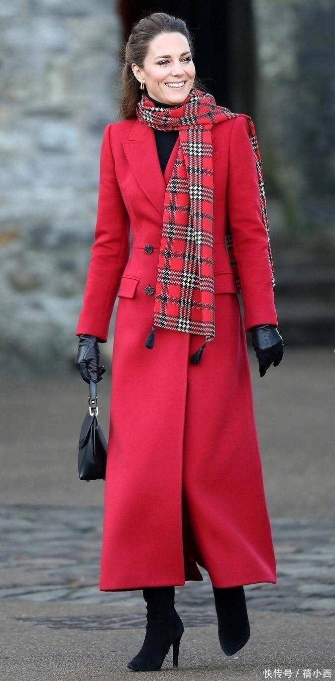 凯特王妃这一身红色大衣搭配黑色长筒靴也很时髦大气,这种经典的色彩组合非常耐看,红色大衣以其鲜艳夺目的色彩,能够瞬间吸引众人的目光,成为冬日街头的一道亮丽风景线,而黑色的长筒靴则以其百搭的特性,完美地与红色大衣相得益彰,显得气质特别好。