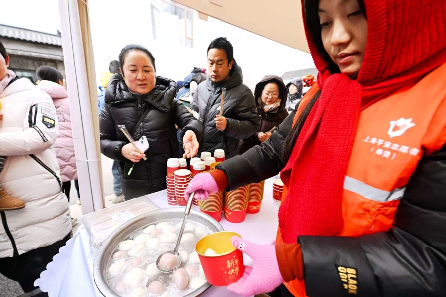 节前一场寒潮袭来,突降的温度不曾影响市民的观演热情。下午1:00,芳华书院旁的大草坪上已是人流如织。舞台一侧,“奉贤伴手礼”供销市集里,各色名特优产品琳琅满目,28个特色摊位,四大主题板块,融合地产好物、时尚消费、供销精品、非遗手作,打造集“看、玩、购、尝”于一体的新春市集。主办方还贴心地准备了免费的汤圆、奘糕、八宝粥这些奉贤传统的过年食品,还备上了区卫健委提供的驱寒养身药草茶,让市民们同时品味奉贤本土的美味、地道的年味,还有浓浓的人情味。